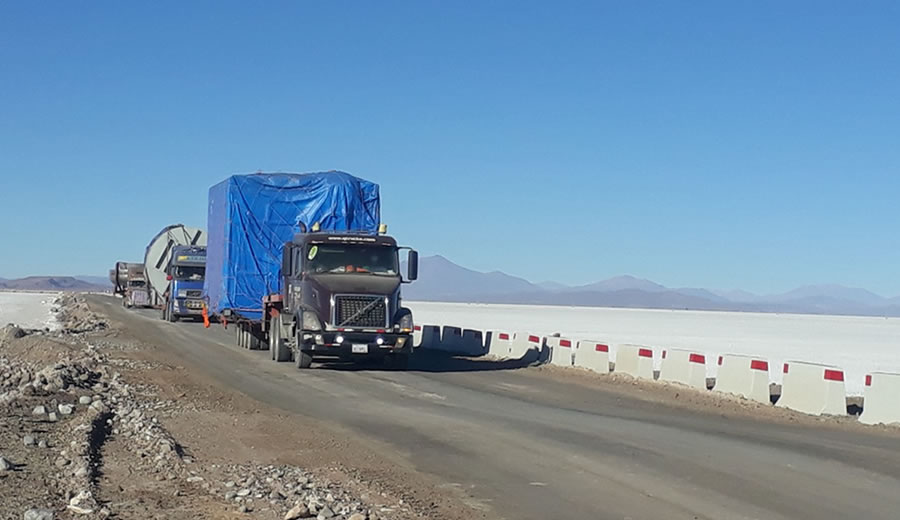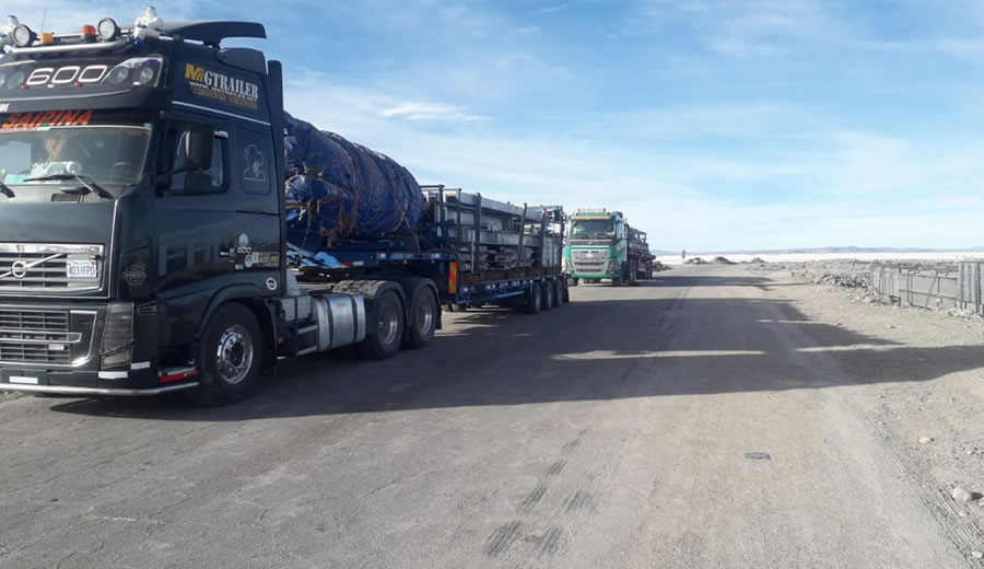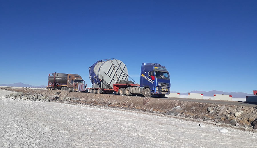 TRANSPORTE DE EQUIPOS Y ESTRUCTURAS PARA EL MONTAJE DE LA PLANTA DE CARBONATO DE LITIO DESDE EL PUERTO DE IQUIQUE HASTA EL SALAR DE UYUNI