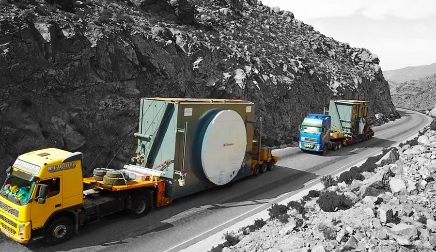 TRANSPORT ARICA – SANTA CRUZ (YACUSES) OF THE NEW CEMENT PLANT, TRANSPORTATION OF LARGE STRUCTURES.