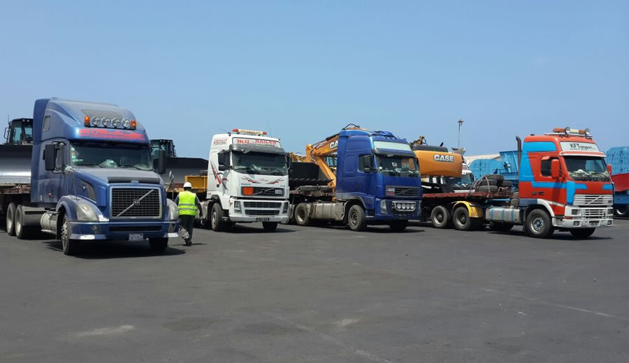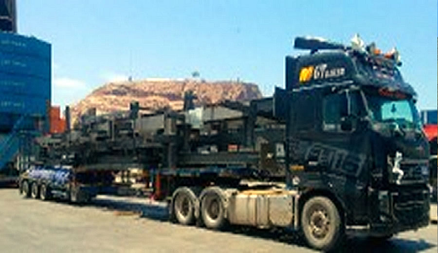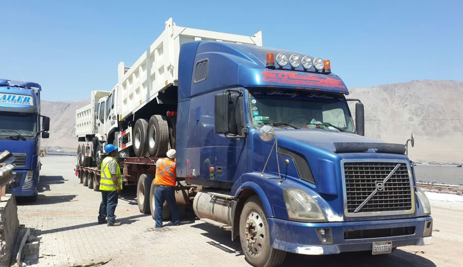 Transporte en 40 días de 58 equipos nuevos entre estos, VOLQUETAS, MEZCLADORAS, BULLDOZER, EXCAVADORAS. DESDE ARICA HASTA SANTA CRUZ.
