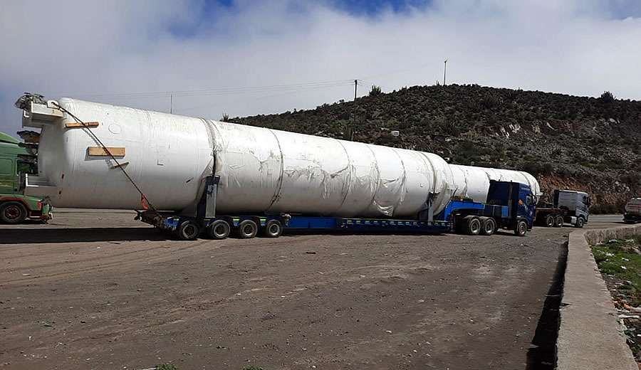 New catalytic refining unit —NURC ; from Arica to Cochabamba, with several pieces with diameters of 5.20 meters, and long pieces of 19 meters long, accompanied by own escorts and police throughout the journey