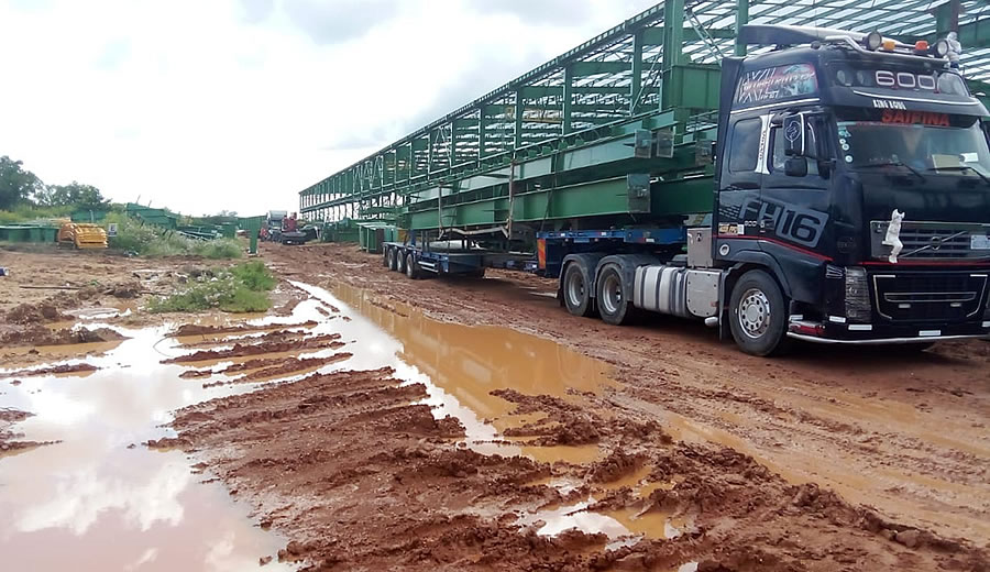 TRANSPORTE DESDE PUERTOS DE PERÚ Y CHILE DE EQUIPOS ESPECIALES Y ESTRUCTURAS PARA LA CONSTRUCCIÓN Y MONTAJE DE LA SIDERURGICA MAS GRANDE DE BOLIVIA